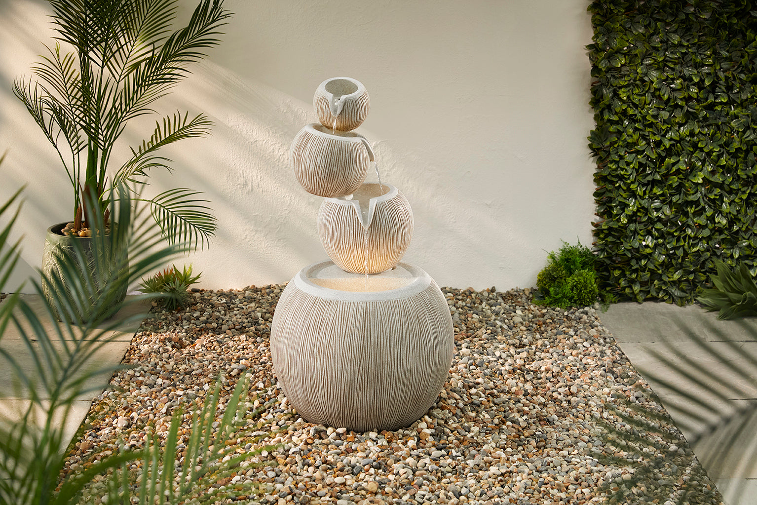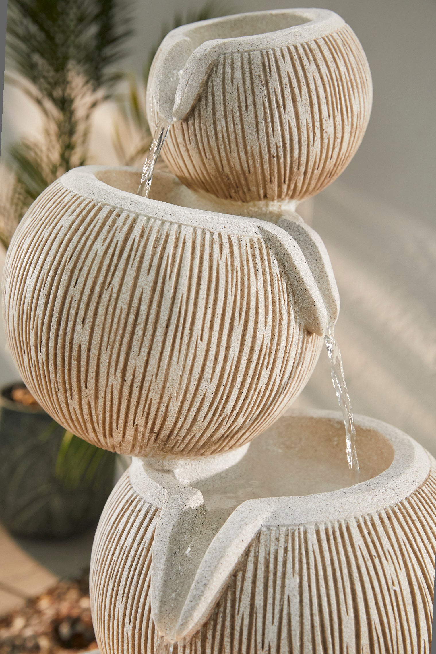 Textured stone-effect finish with beautiful neutral tones and impressive water flow.